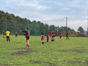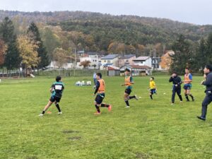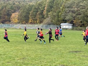 ブログ 試合 タグラグビー大会 2024年10月29日 2024年10月29日 小樽潮陵高校ラグビー部 27日・日曜日にからまつ公園で行われたタグラグビー大会に参加してきました! ラグビースクール生、協会・保護者の方々、高校生が年齢、性別関係なくランダムに振り分けられたチームで競い合いました。 マイタケチームやバナナチーム、イノシシチームなど、色々なチームがありましたが、どのチームも個性と元気がいっぱいでした✨ 大会後には高校生全員で、今シーズン何度もお世話になったからまつ公園に感謝を込めて肥料を撒き、協会・保護者の方々が用意してくださった豚汁を頂きました。 ありがとうございました😊